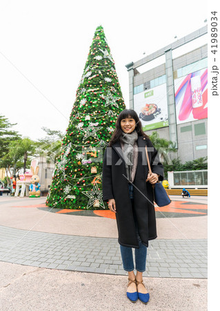亞洲台灣台南大遠百火車站聖誕節耶誕節女性人像女生模特兒聖誕樹耶誕樹雪橇公車交通