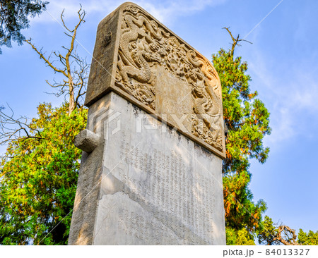 Stele with commemorative inscriptions at Temple of Confucius, UNESCO world heritage site in Qufu, China