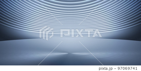 白色拱形牆立面與縱向地面空間背景3D渲染