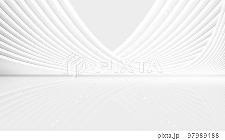 白色未來主義建築彎曲線條,人造空間,3D渲染.