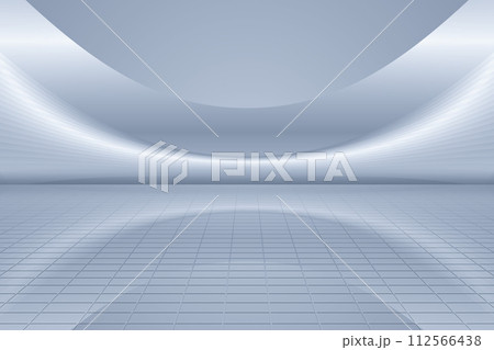 白色弧形結構牆立面與網格地面建築空間背景