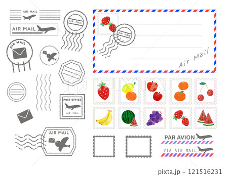 紅色郵箱、信件和明信片郵寄套裝的簡單插圖