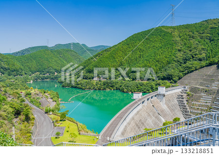 森町(靜岡縣)太田川水壩的水壩湖(川瀨美湖)風景
