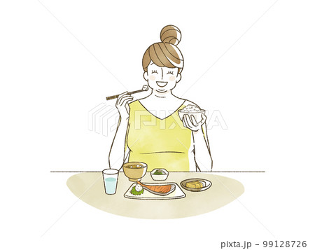一個男孩吃他最喜歡的咖哩和米飯的插圖