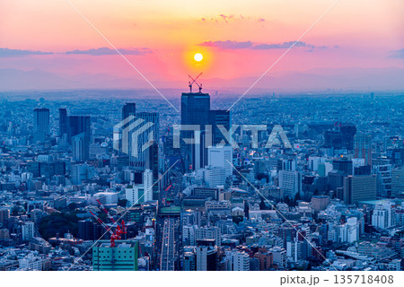 (東京)從六本木新城屋頂眺望澀谷的摩天大樓和日落