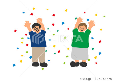 圖:一男一女在五彩紙屑中歡呼雀躍