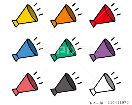 一匹咧嘴笑著的馬拿著擴音器、喇叭歡呼,大促銷,特價,單色