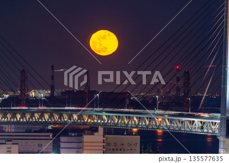 月升時的橫濱灣大橋,神奈川縣