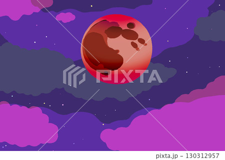 月全食期間的夢幻夜空,銅色月亮閃耀的美麗景象
