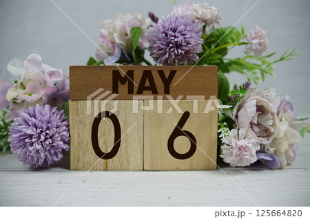 Wooden Calendar Showing the Date of May 6th. Day 6 of May month