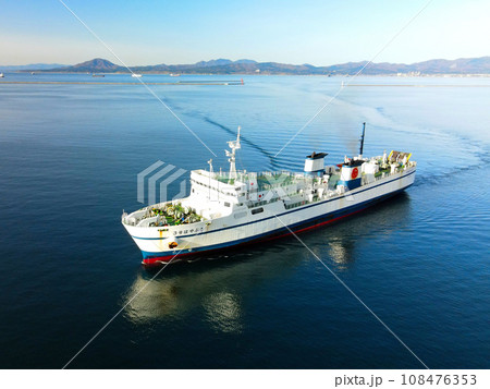 拍攝進入北海道函館市函館港的津輕海峽渡輪的秋天景色