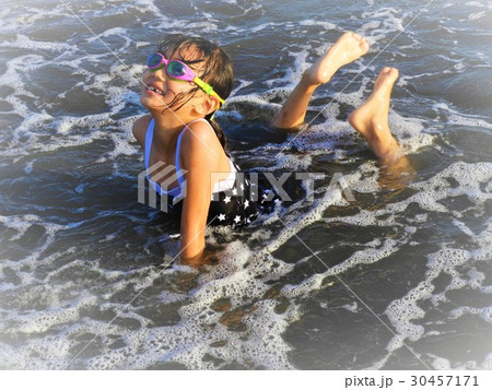 女孩, 小孩, 泳衣, 綁馬尾, 玩樂, 玩沙, 漁光島, 安平, 台南,月牙灣, 海,海邊, 海灣