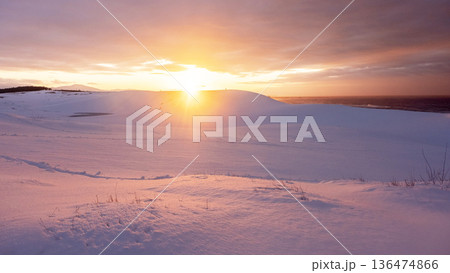 鳥取沙丘:夕陽染紅的雪景