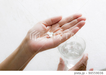 醫學,中年婦女手掌中的藥物