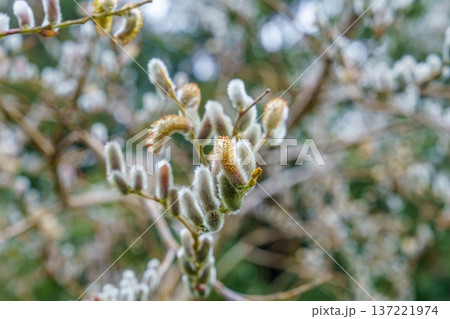 柳絮預示著春天的到來,背景柔和朦朧。