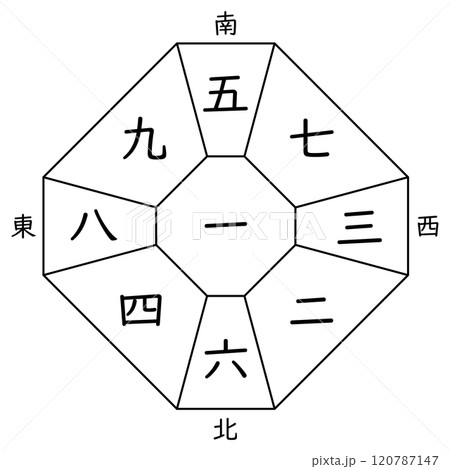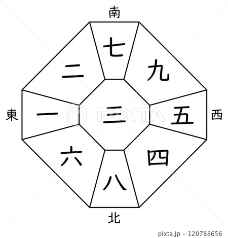 Kyusei Pneumatics中使用的簡易後天方位圖(五黃中谷)