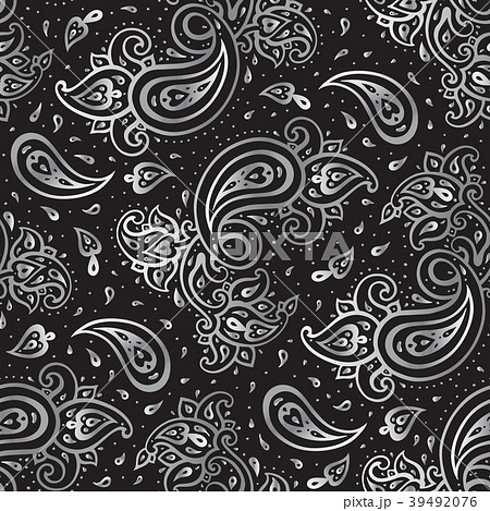 佩斯利圖案{頭巾圍巾}矢量圖(黑色/黑色)