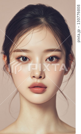 Stunning Korean beauty portrait with flawless skin and sleek hair highlighting elegance and poise