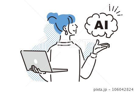 擁有人工智能和個人電腦的女性的人物形象