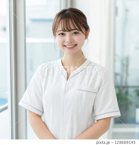 一位皮膚光潔的日本女性的臉部特寫,直視鏡頭
