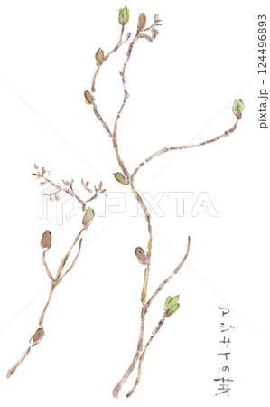 早春植物馬尾草發芽的水彩畫