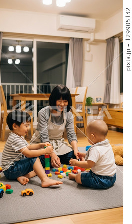 父母與孩子玩肥皂泡 - 人工智慧生成