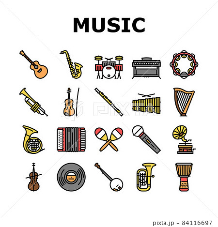 Music Instruments Performance Icons Set Vector