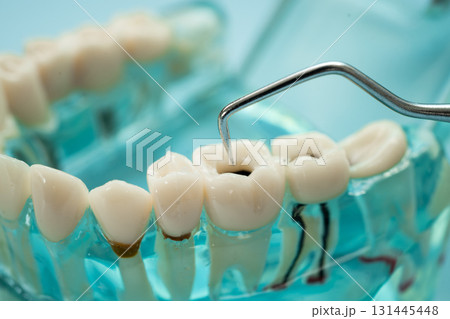 Dental teeth model isolated on white background with clipping path for learn about dentistry.