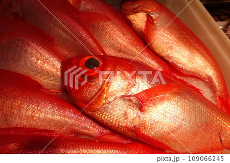 魚店冰上擺放的野生金鯛魚