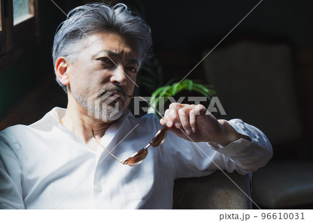 一個中年男人坐在沙發上的畫像