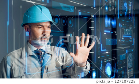 一位外國工程師看著未來介面的概念視覺圖