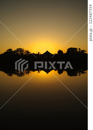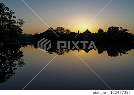 大阪府豐中市若竹池日出風景