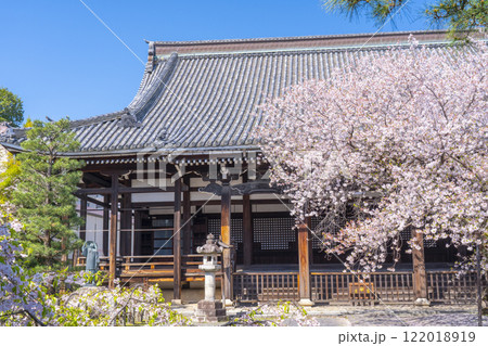 春天的京都,本法寺,櫻花覆蓋的開山堂