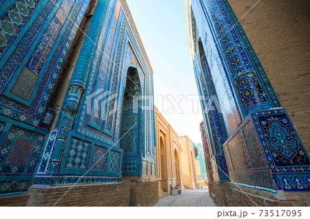 Tourists with luggage visiting a grand mosque with minarets abstract geometric shapes in background travel theme