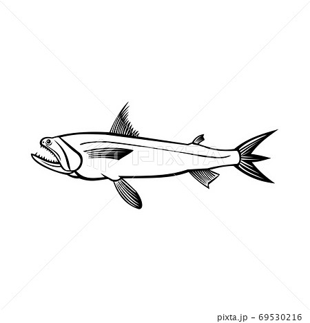 Indo-Pacific Tarpon or Oxeye Herring Side Retro Woodcut Style