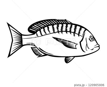 Japanese Black Porgy or Kurodai Side View Retro