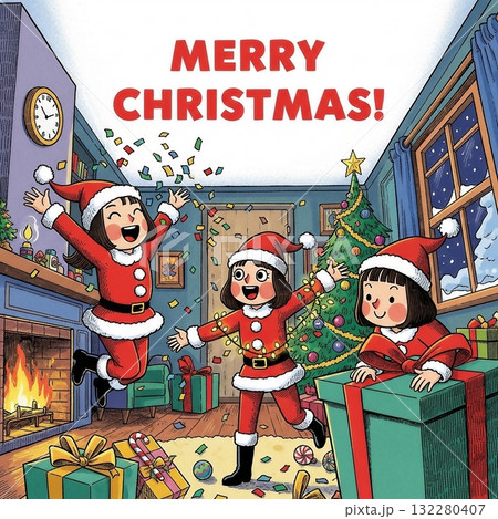 穿著聖誕老人服裝的女孩們享受聖誕節