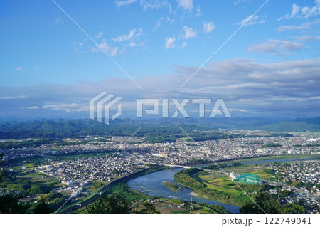 從愛知縣犬山市犬山城眺望木曾河、萊茵河大橋和生山地區