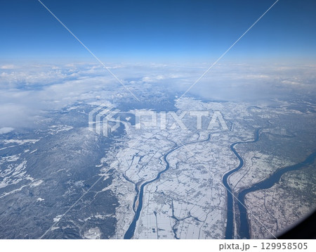 從飛機窗口看到的景色 濃尾平原 木曾川的降雪