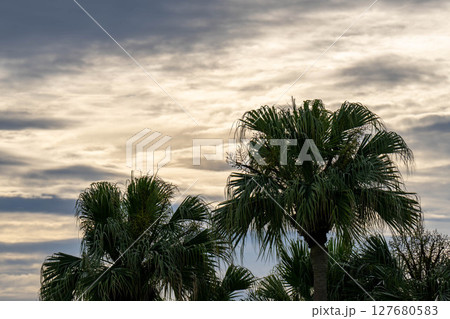 富埃特文圖拉島上的一條街道,兩旁種滿了棕櫚樹,建築色彩柔和