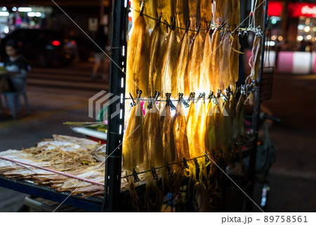 Dried squid, Thai street food, for eat at night market in Hua Hin