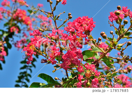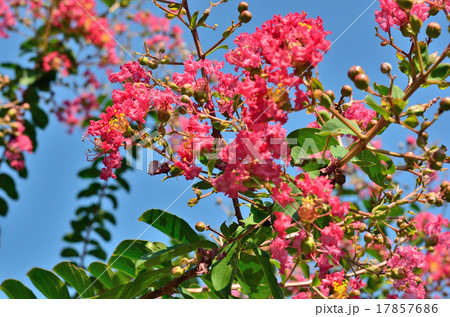 行道樹上的紅紫薇[藍天背景]