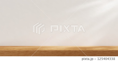 3d white wall room scene with wooden counter and natural lighting. Product presentation template