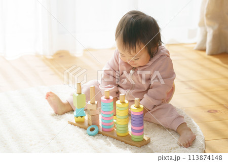 0歲女嬰玩積木