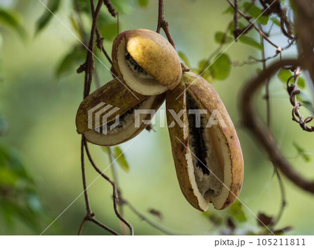 成熟的木通果實被劈成兩半