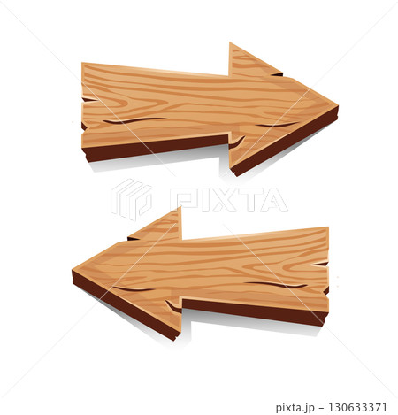 Wooden arrow signs pointing left and right with natural grain texture, ideal for rustic directions, maps, or decorative design