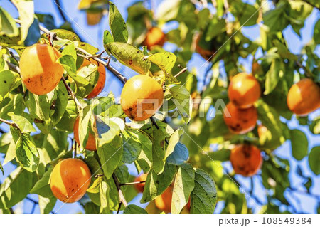 宮城縣川崎鎮秋天的風景,樹上有許多柿子
