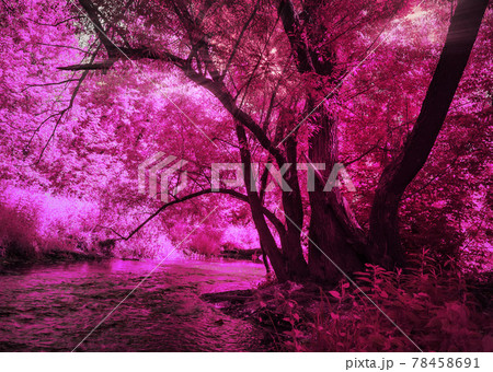 Flowers of a perennial plant Silene dioica known as Red campion or Red catchfly on a forest edge in the summer