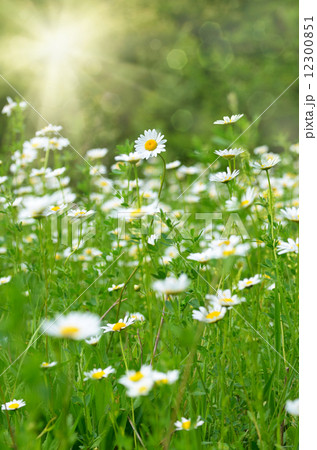 Wild camomiles in the green grass