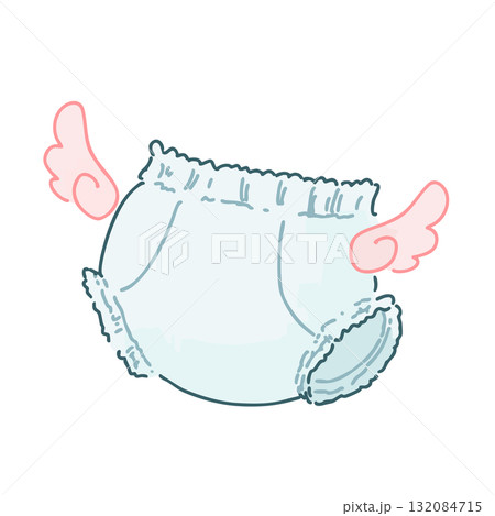 手繪帶翼一次性尿布插圖(褲型,嬰兒用)
